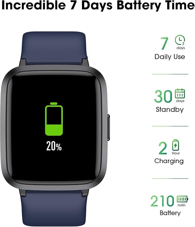 - Long Battery Life and 5ATM Waterproof: This smart watch only requires 2 hours of charging and can be used for 5-7 days continuously. 5ATM waterproof rating can withstand daily sweat, washing hands and rainy day, allowing you to fully enjoy your workouts.