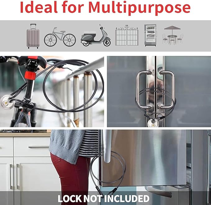 - Multipurpose - The double-looped steel cable is ideal for securing bikes, motorcycles, sports equipment, gates, fences, ladders, coolers, trash cans, and any other objects you wish to safeguard.