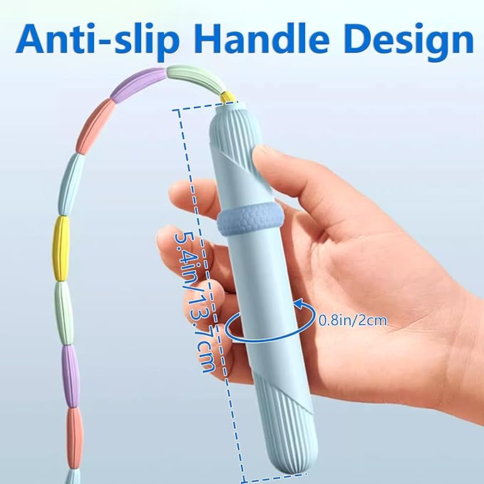 - Comfortable Anti-slip Handle: The handle of jumpropes for children is ergonomic with roman column design, the thumb naturally grips the positioning ring and the other fingers are naturally curved, make sure a comfortable and secure no-slip grip for small hands.