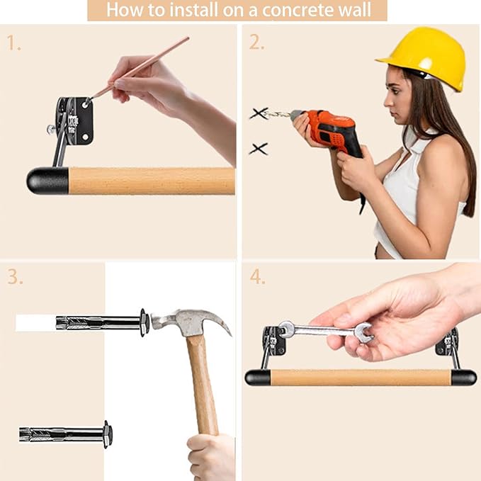 - Easy to install: Our wall mounted barre system comes with 4pcs hexagonal expansion screws and 4pcs wood screws, which can be installed on wooden walls or concrete walls. It only takes a few minutes to complete the installation and start exercising immediately.