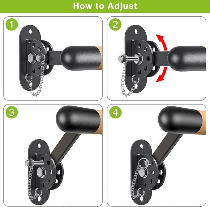 - 5 Heights are Freely Adjustable: This wall mount ballet barre comes with a height-adjustable metal bracket, which allows you to easily adjust the height of the pole to meet the needs of various heights. The adjuster is very sturdy and it provides excellent stability and support. You can also move the pole closer to the wall to save space when you are not using it.