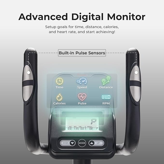 - 【DIGITAL MONITOR w/ TARGETING FUNCTION】Personalize your training by setting time, distance, calorie, and heart rate goals. Track progress in real-time with the advanced digital monitor and use the built-in pulse sensor for precise workout metrics.