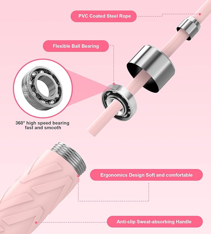 - 【Tangle-Free Skipping Rope】 This workout jump rope features high-quality ball bearings to prevent twisting and entanglement, ensuring stable and smooth rotation. The fluency of the rope provides a superior exercise experience.
