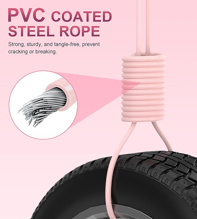 - 【Adjustable Jump Rope】 The rope of jump ropes for fitness was made from strong PVC material encased with steel wire strands, sturdy and wear-resistant. The 9.2 feet length can be easily adjusted to your needs, and the excess cord can be trimmed with scissors.
