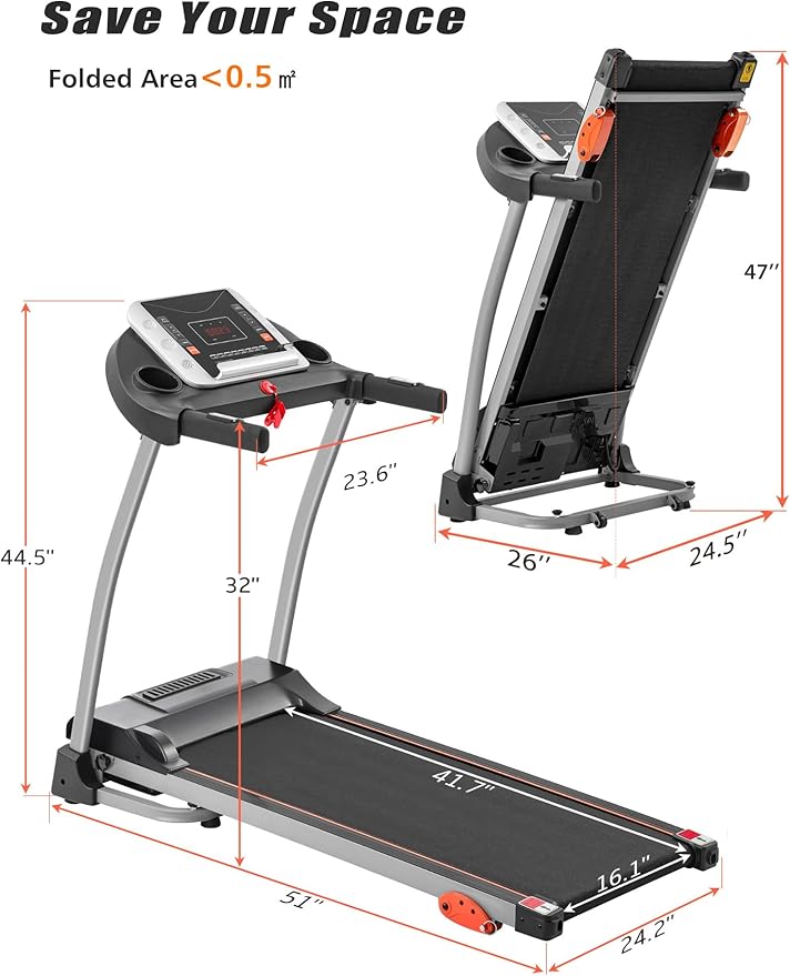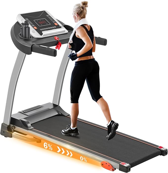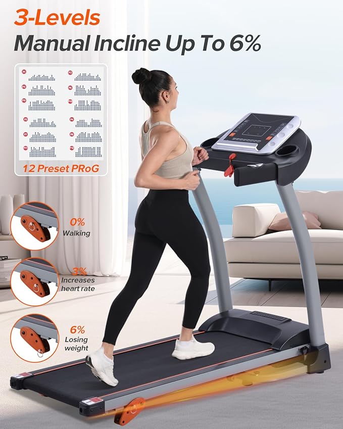 - 【Foldable Running Treadmill with 6% Manual Incline】The treadmill offers different intensity levels, allowing you to burn more calories as you progress from beginner to advanced. The 6% manual incline feature helps you burn up to 60% more calories