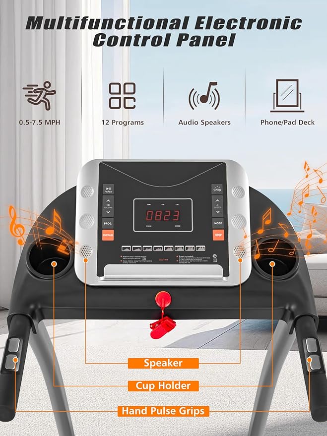 - 【Quiet and Powerful 3.0HP Electric Treadmill】 Merax treadmill features a quiet yet powerful 3.0HP motor. Effortlessly walk, jog, or run on the 41.7” x 16.1” belt without causing disturbances. With a speed range from 0.5 mph to 7.5 mph, this treadmill accommodates various fitness levels, supporting users with a weight capacity of up to 300 lbs. Elevate your safety and comfort with the 5-layer non-slip belt, ensuring a secure and enjoyable running experience