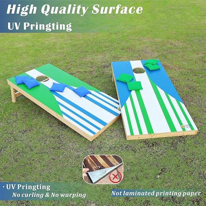 - 【Direct Printing Design】The patterns are directly UV printing on the cornhole boards, not paper/vinyl stickers on it. So you never need to worry about peeling or tearing! And after moisture-proof treatment, never worry about fading from the sun and rain.
