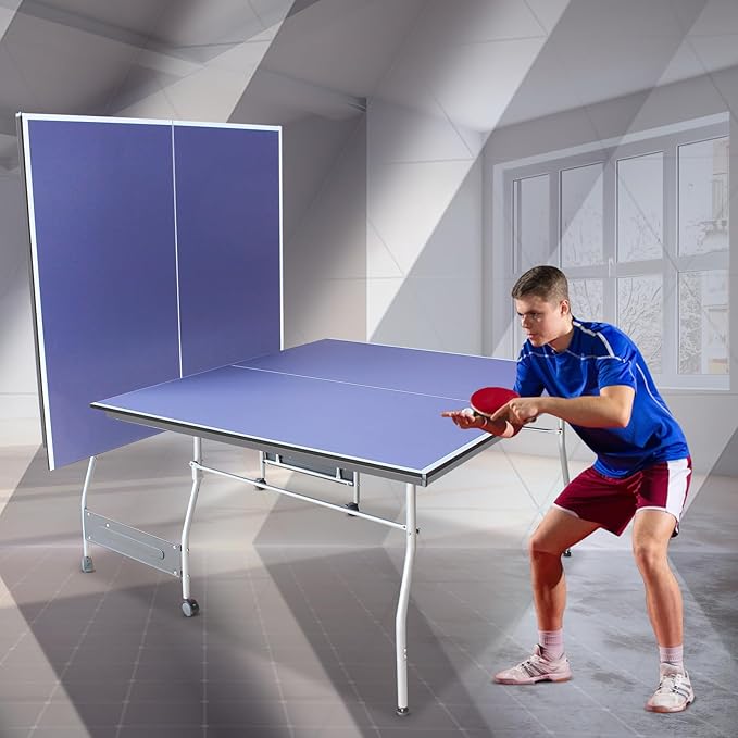 - Foldable ping pong table separates into 2 independent halves, more portable table tennis table & stores in smaller spaces. Unfold one table half for solo playback mode when without a partner.