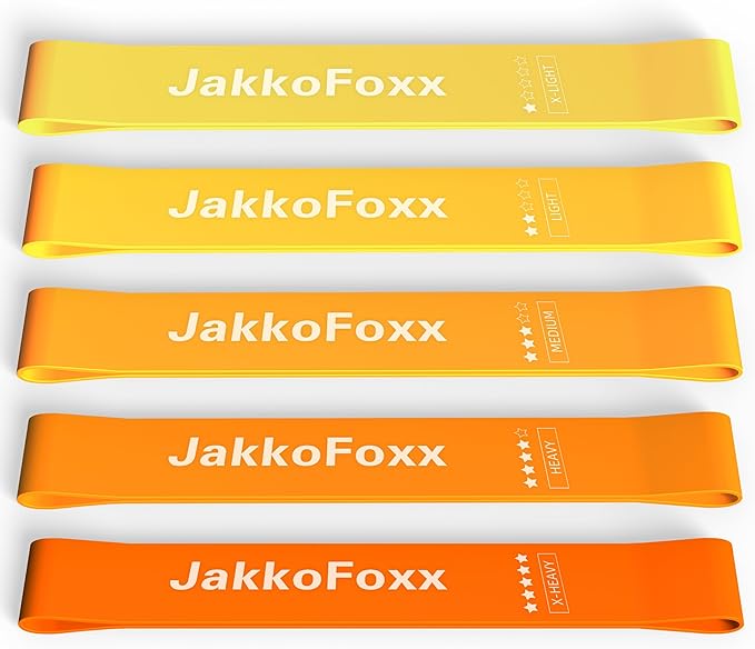- High end exercise bands. Our 12″ by 2″ heavy duty loop resistance bands come in 5 varying resistance levels. This makes them perfect whether you are just starting to workout or a seasoned workout warrior. Our extra light and light bands are great for beginners, while our medium, heavy and extra heavy exercise bands are targeted for more intermediate and advanced strength training.