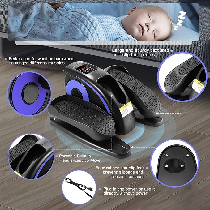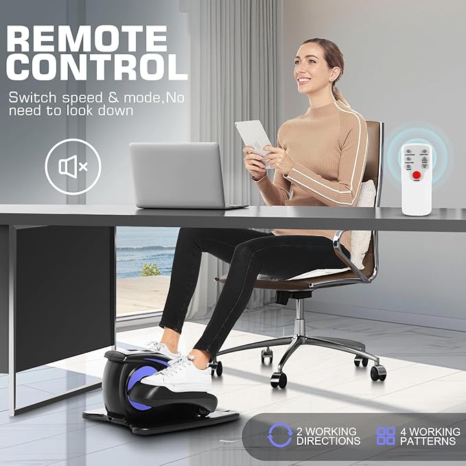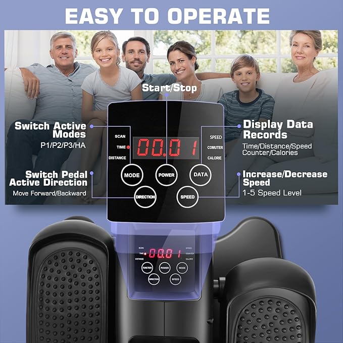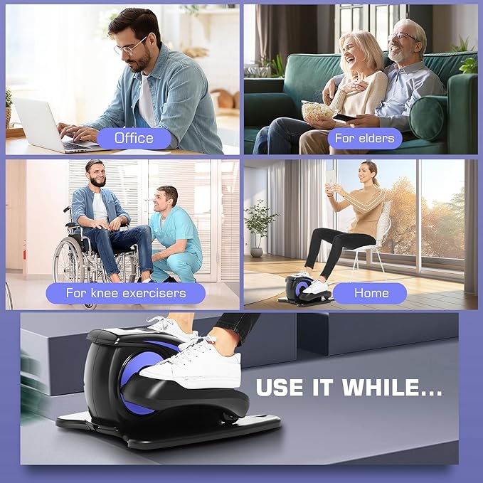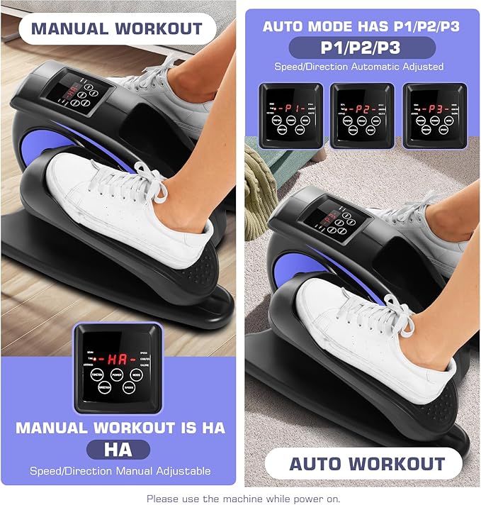- ★【Multiple Movement Function】Depending on your needs and abilities, Ellipse leg exerciser as seen on tv has Auto (P1-P3) & Manual (5-levels speed) for your choice. Pedals can forward or backward to target different muscles. Note: only use it while sitting.