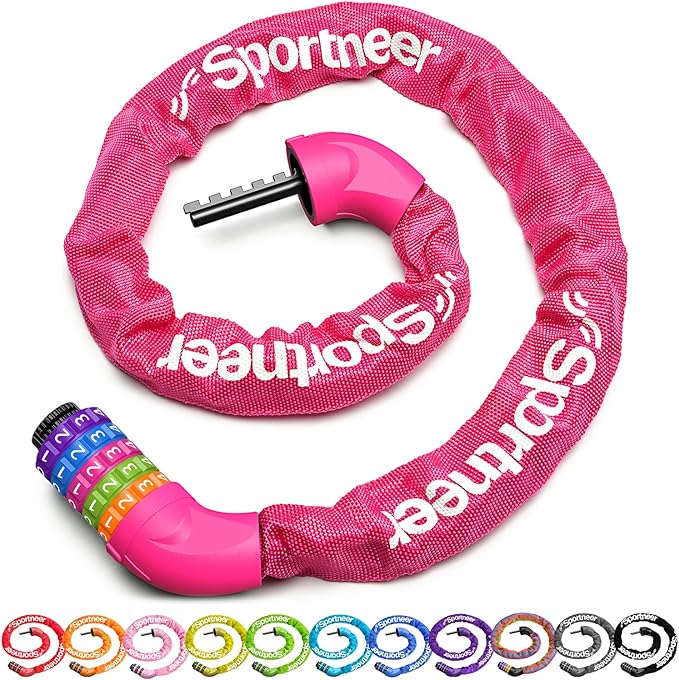 - Rock-solid & Built to Last : The Sportneer bike chain lock is as tough as nails. Crafted from ultra-thick 0.157" manganese steel, it boasts unparalleled resistance against cutting and sawing. The lock core, made from sturdy zinc alloy, adds an extra layer of protection, thwarting any attempts at malicious cutting and ensuring long-lasting durability.