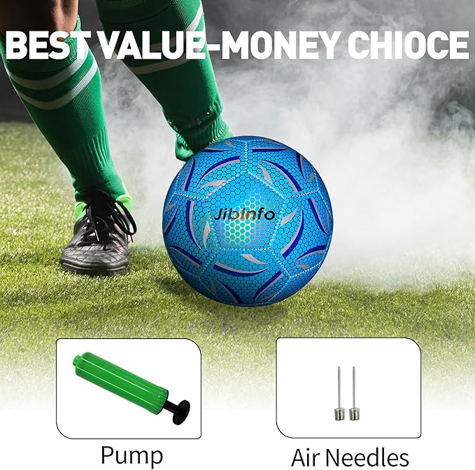 - Day & Night Soccer Toys: The light up soccer ball emits its own shimmering light after absorbing light, is environmentally friendly and emits a clear and bright green light, perfect for evening and night games, making your child stand out on the soccer field, and can also be recorded on camera and posted to social media. JibInfo will offer 2 months guarantee in case there any quality problems, please feel free to contact us, we'll respond as soon as we can