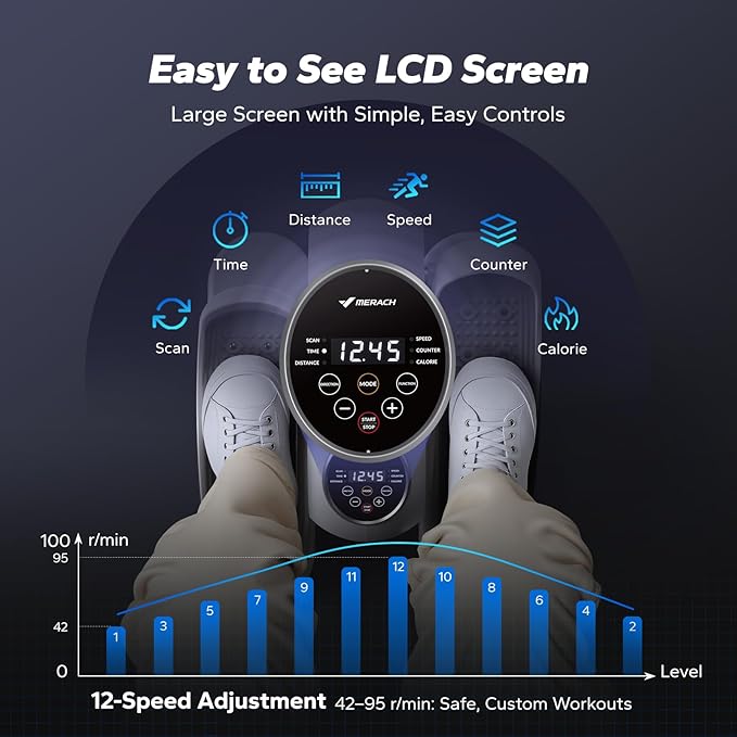 - [Remote Control & Comprehensive Digital Monitor] Merach E32 under desk elliptical comes with a remote control, allowing you to manually adjust it without bending over, protecting your waist and