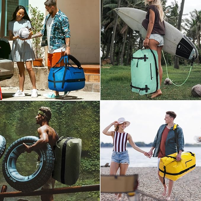 • Convertible Dry Bags with Versatile Carrying Ways --- Designed with adjustable backpack straps that are easily attached or detached, adjustable sternum straps ensure a suitable place to wear, also has an adjustable/removable shoulder strap and 4 sides soft haul handle for multiple carrying ways. It can always meet your different needs, whether it is cross-body, shoulder-body or hand-held