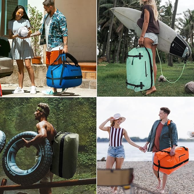 - Convertible Dry Bags with Versatile Carrying Ways --- Designed with adjustable backpack straps that are easily attached or detached, adjustable sternum straps ensure a suitable place to wear, also has an adjustable/removable shoulder strap and 4 sides soft haul handle for multiple carrying ways. It can always meet your different needs, whether it is cross-body, shoulder-body or hand-held