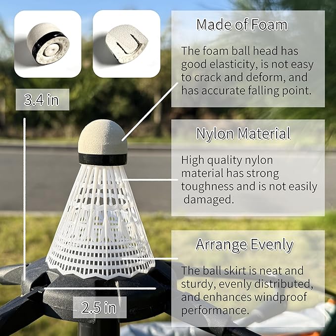 - Material: Nylon birdies badminton are a modern alternative to traditional feather shuttlecocks, crafted from durable nylon materials.Strict selection of nylon feathers, good toughness, high compressive strength, not afraid of extreme cold and heat.