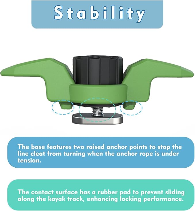 - Secure Firmly: The bottom of the cleat features two raised anchor points and an added rubber pad, effectively preventing rotation or sliding even under tension, ensuring a secure hold for your kayak.
