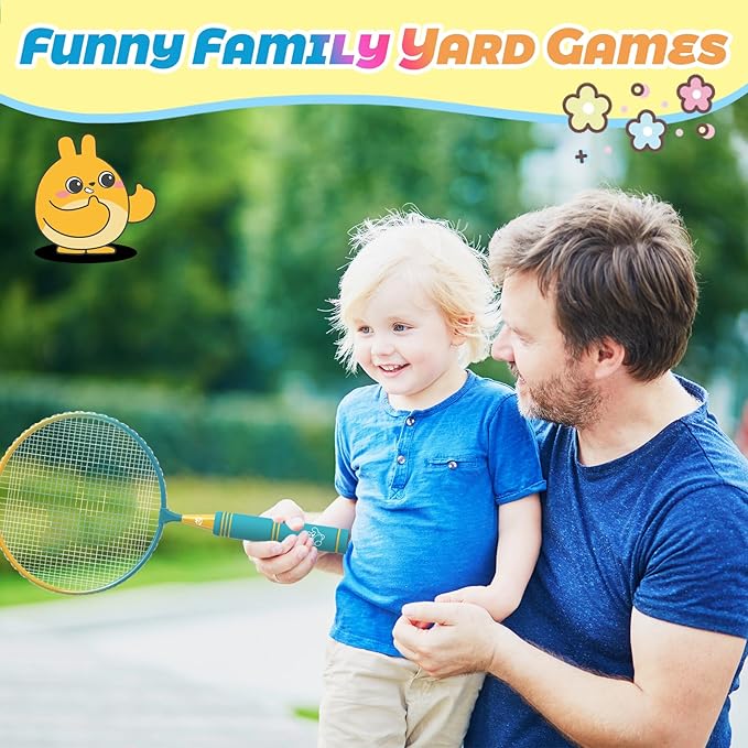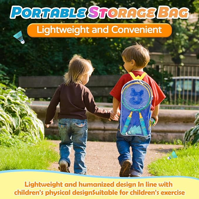 - Durable & Lightweight & Child-Sized: Our badminton racket set is specially designed for children aged 3 to 12 years old. It features a reinforced frame and NBR soft Handle, ensuring long-lasting durability. The soft grip provides added comfort and control during gameplay, enabling kids to fully enjoy the sport without any trouble. With dimensions of 17.3*8.7 inches and weighing only 0.5 pounds, it is easy for kids to hold and play with