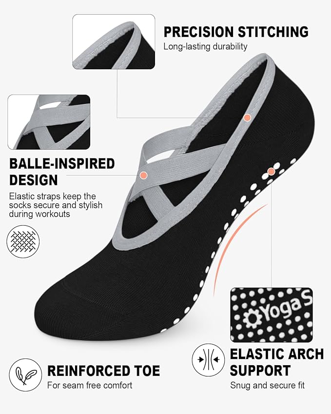 - 🆕SECURE GRIP -- Showcasing non-slip dots on the socks' soles for enhanced grip. Our grippy socks provide optimal traction, stability, and comfort that ensures your feet stay securely in place on the mat or equipment. Say goodbye to slipping and sliding – maintain your secure foundation.