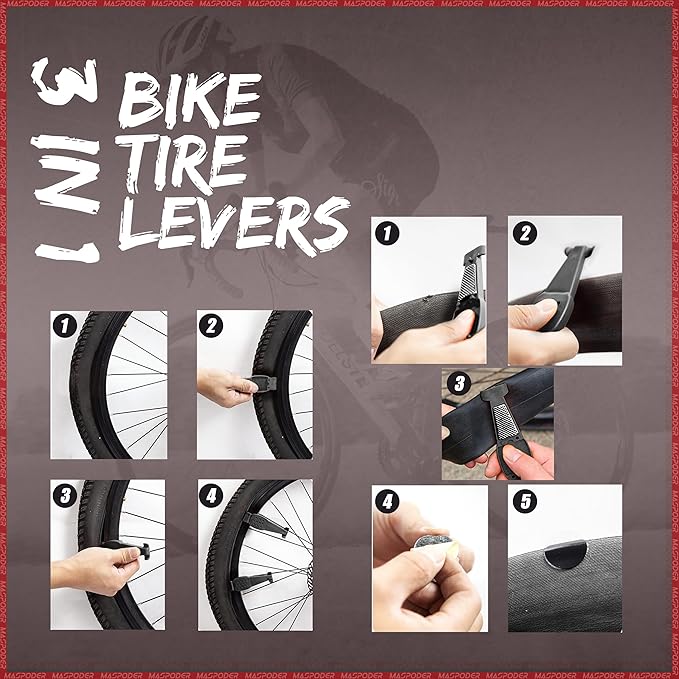 - Bike Tire Repair Kit. This bicycle repair kit comes with a 3-in-1 tire lever and self-adhesive tire patches that require no glue. The tire lever is made of high-strength plastic that won't easily break and has a file for easy maintenance. The self-adhesive tire patches are perfect for emergency repairs and can be applied quickly and easily.