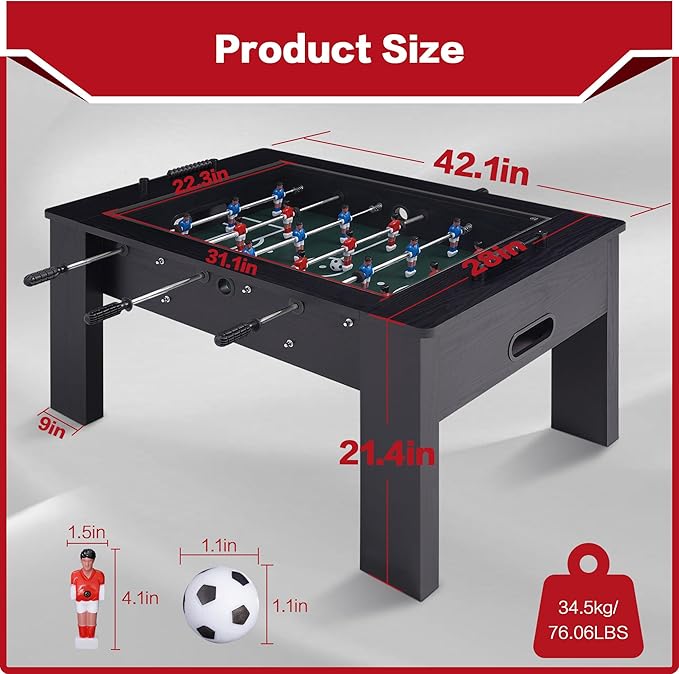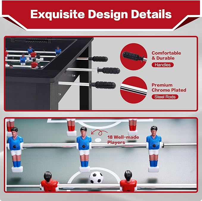 - 【Easy to Assemble】Competitive foosball games for adults and kids. Classic soccer game table full size: 42"x28"x21.4"(LxWxH) and comes with two footballs. With detailed assembly instructions and all hardware delivered, you can easily fit in your game room, basement or den.