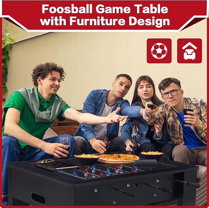 - 【Suitable for Family】Foosball coffee table is very suitable for indoor entertainment between family friends and colleagues, it can provide great fun for everyone. Meanwhile, it is also ideal for stress relief, prompting hand-eye coordination, intellectual development, parent-children interaction and more.