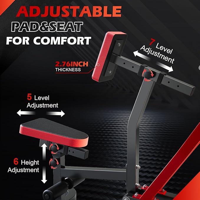- 💪💪【Adjustable Seat】Seat cushion can be adjusted vertically to 7 positions, horizontally to 5 positions, and the chest cushion can also be adjusted to 7 different positions, so that you can find the right height for you to maintain a comfortable and natural posture during your workout. The plate loaded back machine provides comprehensive adjustments for users of different body types and heights suitable for all fitness enthusiast.