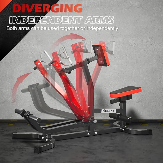 Seated Row Machine, GYHPD Plate Loaded Back Machines with Independent Arms, Multi Grip Positions with Rotating Handles, Upper Body Workout for Home Gym Workout Station