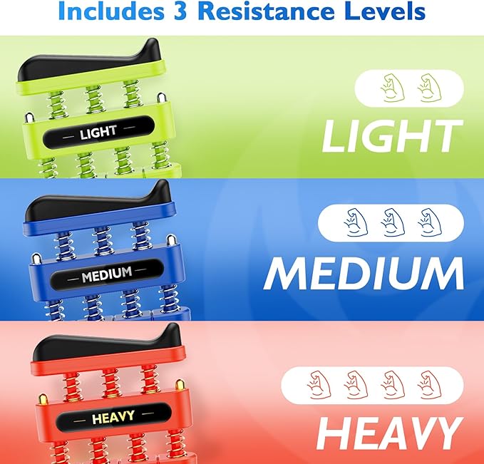 - ๐๐๐๐๐ผ๐บ๐ถ๐๐ฎ๐ฏ๐น๐ฒ ๐ฅ๐ฒ๐๐ถ๐๐๐ฎ๐ป๐ฐ๐ฒ ๐ณ๐ผ๐ฟ ๐๐น๐น ๐ง๐ฟ๐ฎ๐ถ๐ป๐ถ๐ป๐ด ๐๐ฒ๐๐ฒ๐น๐ โ Available in three resistance levelsโLight (3 lbs), Medium (7 lbs), Heavy (9 lbs)โyou can easily adjust the intensity to match your goals. Ideal for physical therapy, strength training, and finger flexibility, you can progressively increase resistance as you improve.