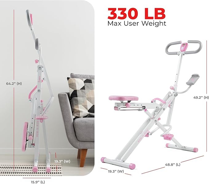 Sunny Health & Fitness Smart Upright Row-N-Ride Trainer w/Adjustable Resistance & 330LB Weight Capacity, Foldable Home Exercise Equipment for Arm, Glute & Leg Training, Free SunnyFit App Connection