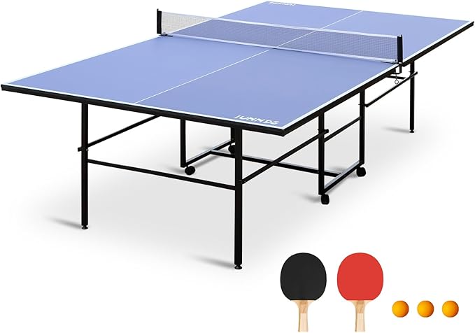 - 【Specifications】Dimension: 108”(L) x 60”(W) x 30”(H),Tabletop thickness: 1/2”, Package Includes: 1 x Table Tennis Table, 1 x Net and Post Set, 2 x Table Tennis Rackets, 3 x Balls.