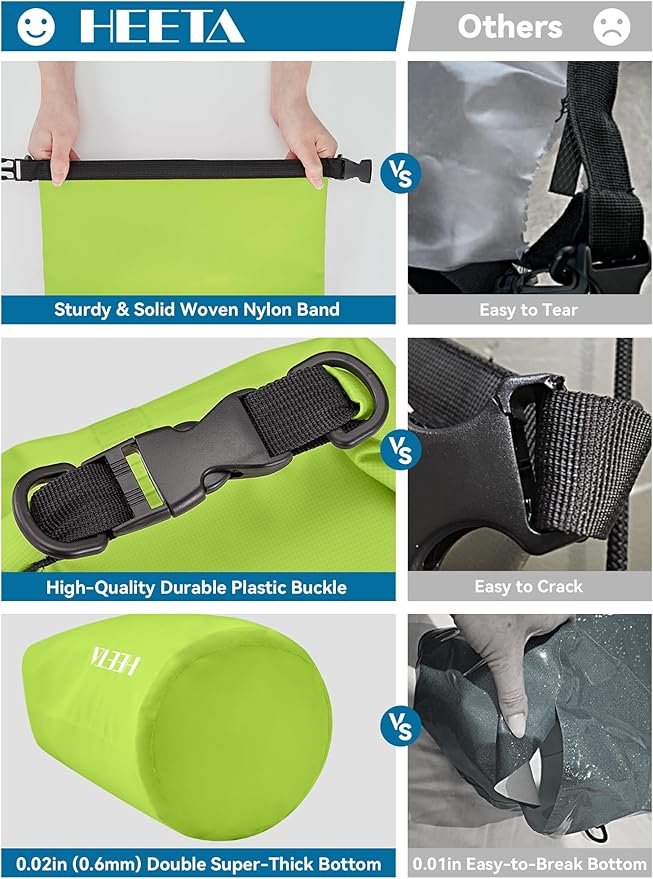 • Durable - Made of 0.02 in (0.5 mm) thick upgraded wear-resistant PVC material, it's suitable for all kinds of outdoor activities. Waterproof bag is well adapted to various weather and environment