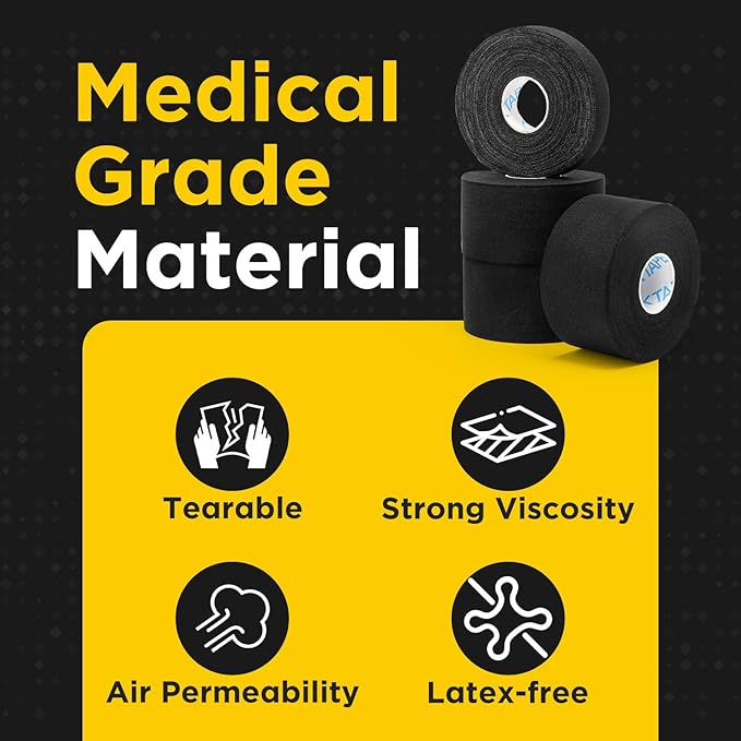 OK TAPE Athletic Tape Finger Tape, Extra Strong Adhesive Sports Tape for Weightlifting, Climbing, Basketball, Volleyball, Black 3 Rolls 1.5" x 15yds and 1 Roll 0.5in x 15yds