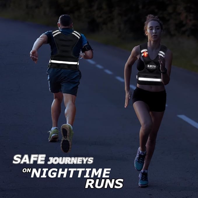 KHTO Adjustable Weighted Vest for Men and Women with Warning Light Reflective Strip,Large Weight Vest for Exercise Set Cardio and Strength Training (4-10lb/11-20lb/20-32lb)