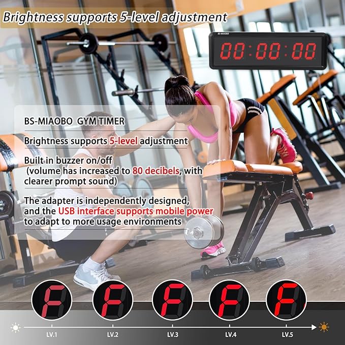 - BS-MIAOBO 1.5-inch multifunctional gym timer: supporting 12 hour, 24-hour real-time clock, countdown, countdown, stopwatch, timed/stopwatch, custom interval mode, paired with an independent stopwatch button, suitable for gym exercise/school/home exercise/weightlifting room/boxing gym/indoor climbing, and can also be used as your home clock