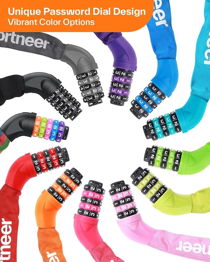 - High Security & Keyless Design: Say goodbye to the hassle of carrying keys and hello to keyless convenience. The advanced 5-digit combination lock offers unparalleled protection, with up to 100,000 possible combinations, making it virtually impossible to crack. This bike chain lock is the perfect choice for those who value safety and convenience above all else.