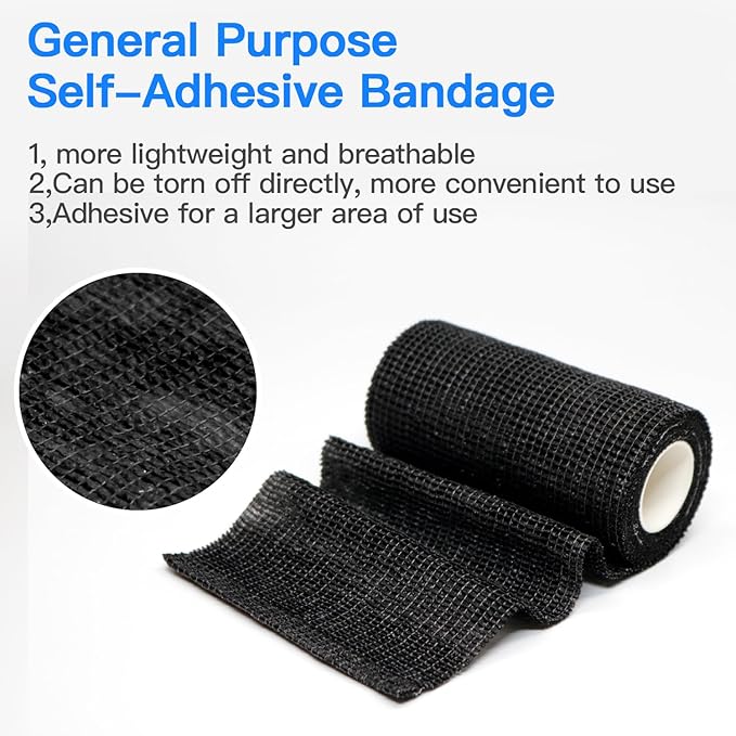 - 【Versatile Bandage】- Suitable for the whole body, such as the ankle, wrist, finger, and so on, for swelling, dressing wounds, sprain, and general soreness, and also suitable for pets. These elastic wrap bandages are strong self-adherent tape that offers excellent support. It will not slip, eliminating the need for frequent
