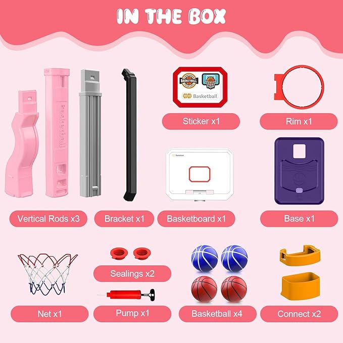 Toddler Basketball Hoop, Adjustable Height 2.3-4.5ft Baby Basketball Goal Set with 4 Balls & Pump, Backyard Poolside Basketball Toy for Boys & Girls Birthday Gift, Pink