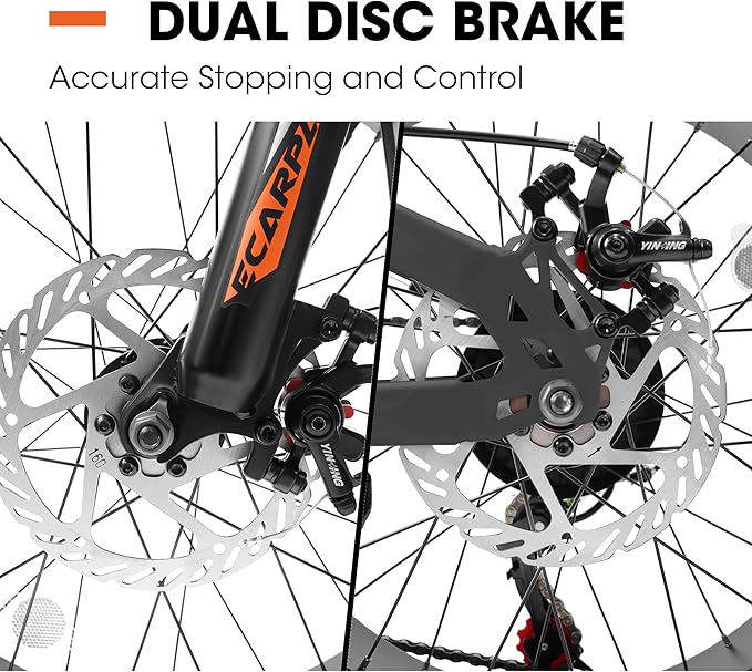 - Superior Safety System -- Equipped with Dual Disc brake, allows for more precise and controlled braking. This braking design comes with precise stopping power and is strong enough for kids to tackle different terrains and have better control over the bike. And equipped with front and rear reflectors, ensuring kid's riding safety in dark situations.