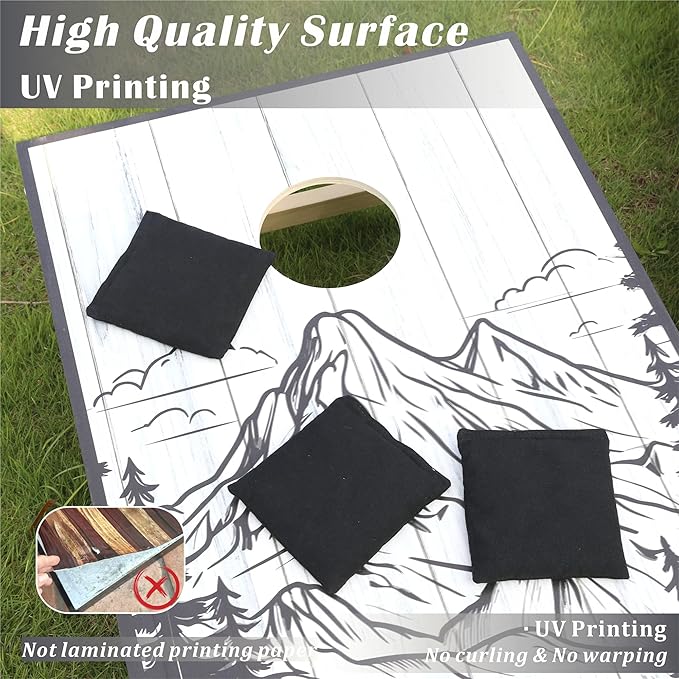 - 【Direct Printing Design】The patterns are directly UV printing on the cornhole boards, not paper/vinyl stickers on it. So you never need to worry about peeling or tearing! And after moisture-proof treatment, never worry about fading from the sun and rain.