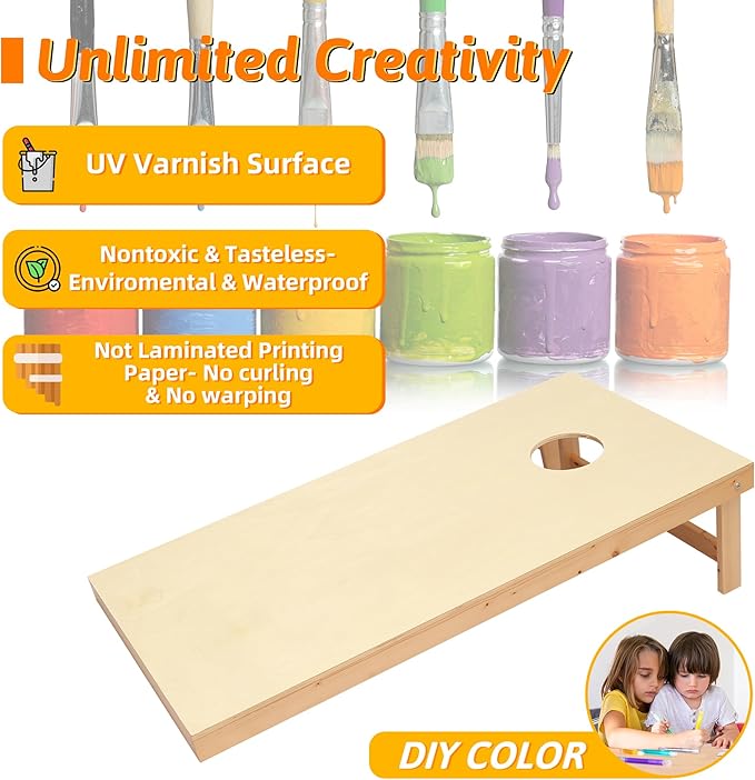 - 【Natural Wood Grain for DIY】The natural solid wood corn hole boards are directly covered with UV varnish, not paper/vinyl stickers on it. So you never need to worry about peeling or tearing! Natural and simple colors allow you to DIY freely and design your own unique style.