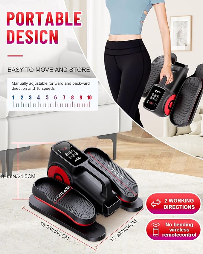 - 【Elder Friendly】Lightweight and easy storage. It can be easily moved from one room to another. This thoughtful design makes this Elliptical Training Machines ideal for seniors and people with limited mobility. Low-intensity exercise can burn calories, improve cardiovascular health, and help the legs recover quickly. ( The remote control is not equipped with a battery due to logistics reasons and requires you to purchase it separately)