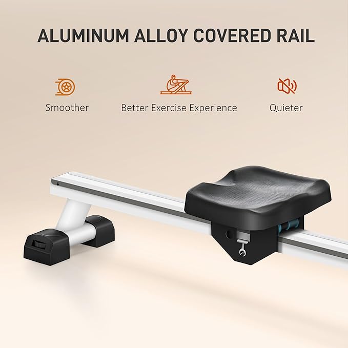 - Enjoy the Row: With a smooth, aluminum alloy rail, this row machine seamlessly glides with each motion. Place down a tablet or phone on the provided holster, zone out to a movie, or get your head in the game with some greatest hits.