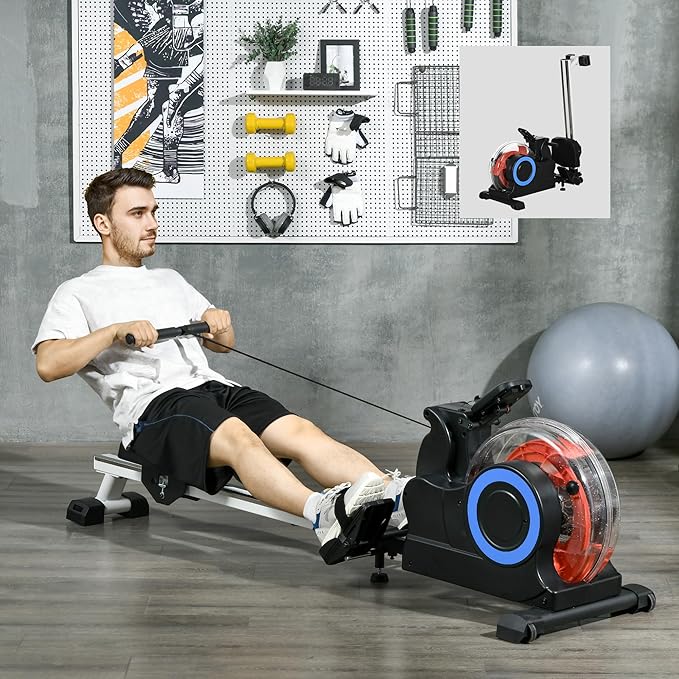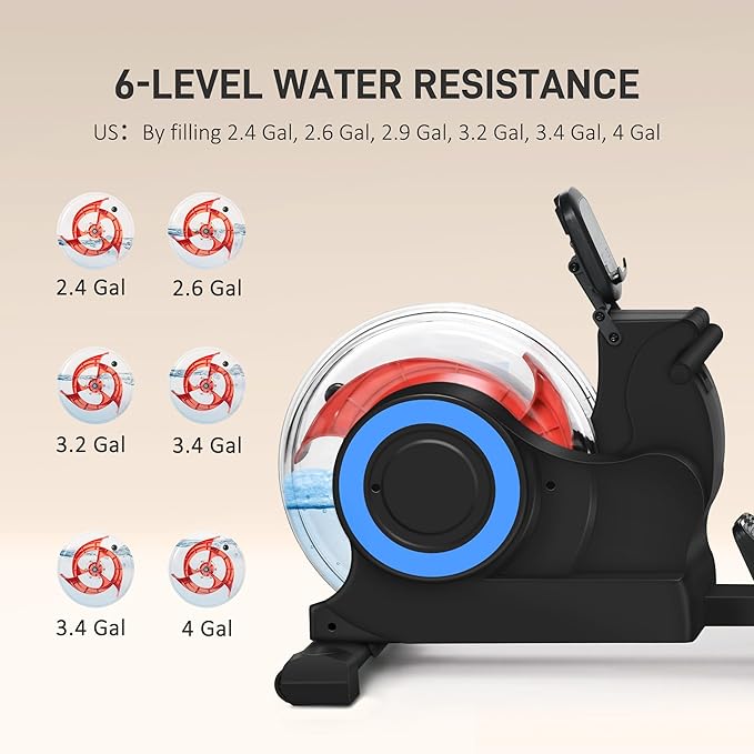 - Water Rowing Machine for Home: Our water rowing machine offers a life-like workout. Rowing is a full body exercise and our machine scales resistance as you progress. Simply add water up to six times for a harder setting.