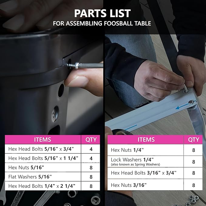 - EASY INSTALLATION: This foosball air hockey combo table comes with a pre-assembled playfield; just attach the legs for a fast and effortless setup. This soccer table game includes step-by-step instructions, a video guide, and all necessary tools for a smooth, hassle-free experience. Set up your game room and start playing in no time.