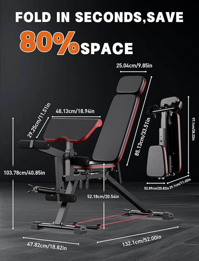 - Enhanced Comfort: High-density foam padding, is sweat-proof and tear-resistant, allowing you to perform any exercise with comfort. This weight bench is wrapped in premium waterproof PU leather and filled with dense foam padding.
