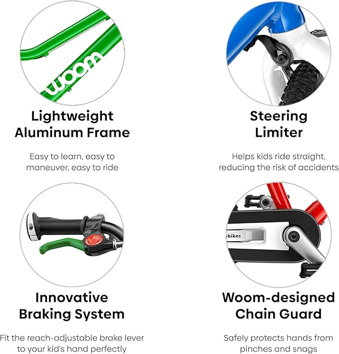 - SINGLE SPEED BEGINNERS BIKE: The woom 2 is an ultralight 14” children’s bike for all-around use designed specifically for kids ages 3 to 4.5 years old. The woom 2 provides a seamless transition from a balance bike to a pedal bike without the need for training wheels – in no time at all kids intuitively learn balancing, resting their feet, and pedaling. (woom 2 Specifications: Tire: 14”, adjustable saddle height 15.7.”-19.3”, bike weight (including pedals): 12.3 lbs., weight limit: 130 lbs.)