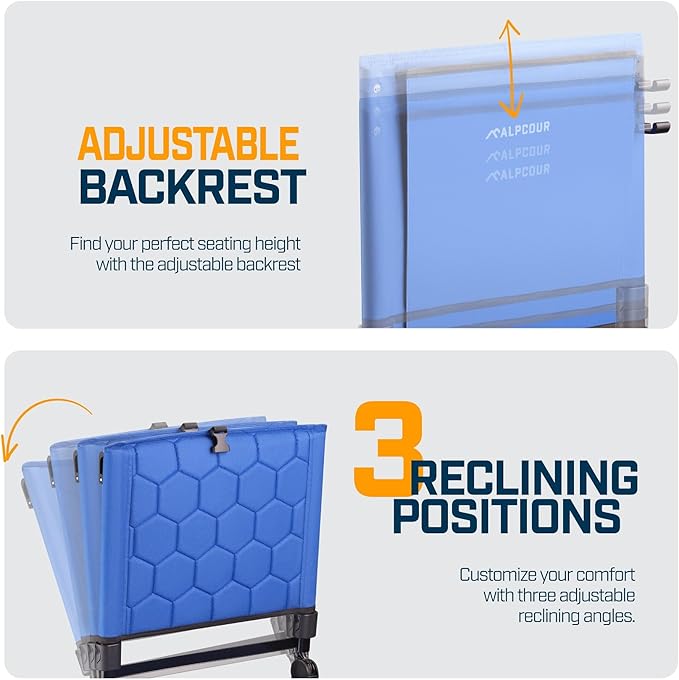 - MAXIMUM COMFORT & SUPPORT – Designed with 3 reclining positions and an adjustable backrest for personalized comfort. This is the perfect choice for stadium seats for bleachers and football seats for bleachers, providing superior comfort at sporting events or concerts.