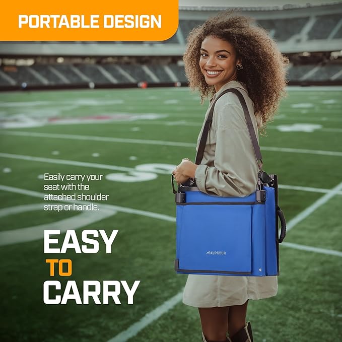 - PORTABLE & EASY TO CARRY – Weighing under 10 pounds, the bleacher seats with backs and cushion is equipped with a convenient carry handle and shoulder straps, making it easy to transport despite its sturdiness. Perfect bleacher seat for picnics, or any outdoor adventures.