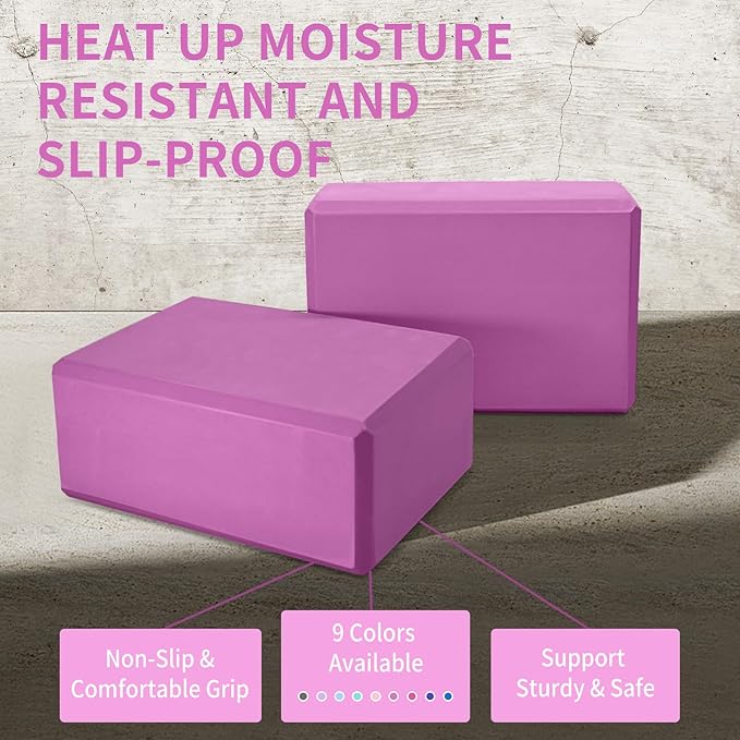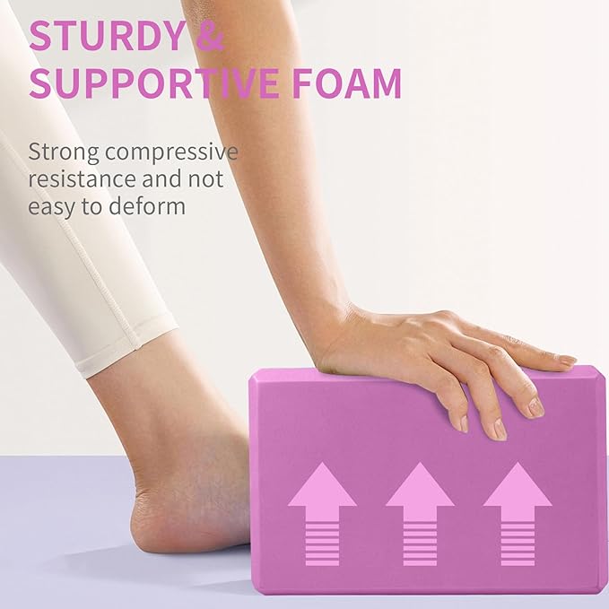 Yoga Block 2 Pack 9"x6"x3", Sturdy Yoga Foam Blocks, High Density & Non Slip Surface for Pilates & Stretching, Fitness Accessories for Stability & Balance